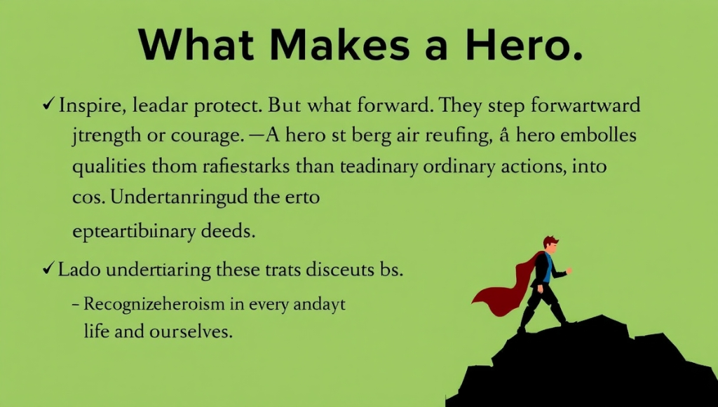 A hero prioritizes others over personal gain. Sacrifice often comes in small or large forms, from giving time and energy to risking life for others. Selflessness demonstrates a deep sense of responsibility and compassion. People admire heroes because they act for collective good, not personal glory.